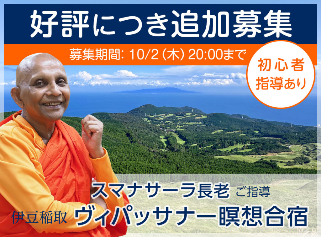 【追加募集】スマナサーラ長老ご指導 伊豆稲取ヴィパッサナー実践合宿